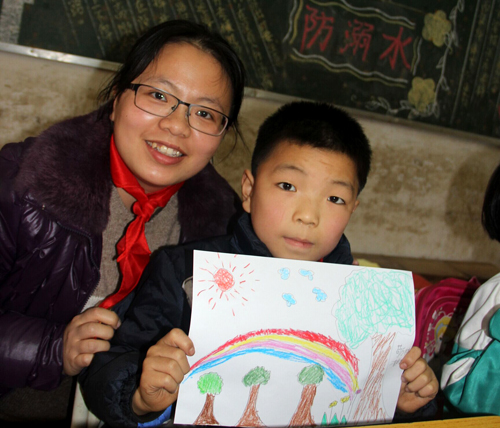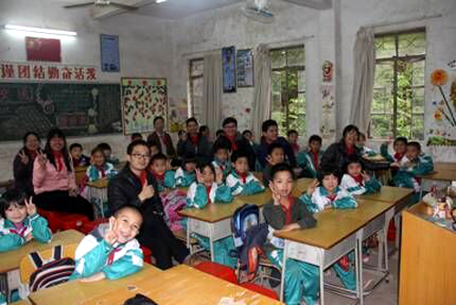 该学校教学设备简陋,师资力量单薄,仅有一至三年级,总人数不足一百人,学生大部分是外地务工人员子弟。到达学校后,支部与学校二年级的全体学生举行了“我们都是祖国的花朵”主题班会。在“同学们来自哪里”的互动环节中,小朋友们纷纷快速地在纸上写下自己家乡的名字;接下来通过一段佛山文化的介绍短片,让学生们领略了佛山的风土人情,也由此对佛山产生了无限憧憬和向往,踊跃举手说出自己想象中的佛山,每个大胆发言的学生还得到支部精心准备的一份小礼物。三月正值植树时节,学生们随后还以树为主题作画,将一幅幅色彩缤纷的作品送给支部党员,以此表达对我们的谢意;最后,支部党员给每位学生都派发了书包、文具等爱心礼品,还与四位受资助的学生进行了亲切交流,鼓励他们好好学习,天天向上。