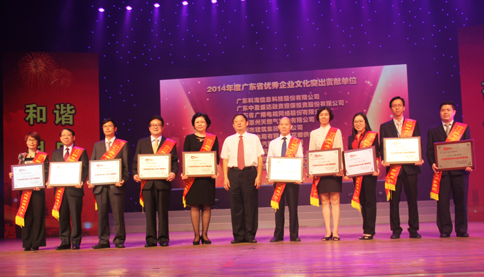 荣获“2014年度广东省优秀企业文化突出贡献单位”称号是我司在企业文化建设方面取得的阶段性成果,表明司坚守让信用美好明天的使命和“共创共享共成长”的企业核心价值观,主张与社会各方合作共赢的文化理念在省内得到了社会各界的广泛认可。我司将继续加强企业文化建设,不断探索、创新和完善企业文化并加强宣传推广,为建设文化强省做出应有的贡献。