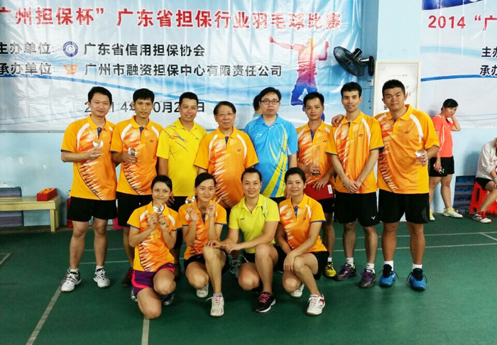 2014年10月24日,由广东省信用担保协会主办、广州市融资担保中心有限公司承办的2014“广州担保杯”广东省信用担保行业羽毛球赛在广州黄花岗银翔羽毛球馆举行,来自广东省金融办、广东省中小局、广州市金融办、广州市中小局、广州市国资委以及广东省信用担保协会会员单位及合作单位的100多名参赛选手参加了此次比赛。