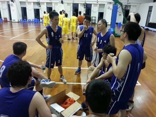 5月13日下午,刚刚成立的“中盈盛达篮球队”迎来了D组的首场比赛,对手是区内的老牌队伍星星集团。受组队时间短,队员少等因素影响,中盈盛达篮球队开场表现并不理想,失误频频,得分效率低,一直被对方压制。随着比赛的深入,球员紧张情绪得到缓和,状态渐入佳境,加强了防守,进攻也渐有起色,第3节比赛结束后仅落后星星集团6分。第四节比赛开始后,中盈盛达将士们按照休息时的战术部署,提高了防守强度和进攻频率,中投、三分、上篮、罚球处处开花,一度将比分追近至2分之差。在离比赛结束还有2分钟的时候,眼看比分就要追上,队员们的心态也逐渐焦急起来,失误开始增多,对手在断球后连续获得得分机会,比分重新被拉开,最终以23:33遗憾落败。