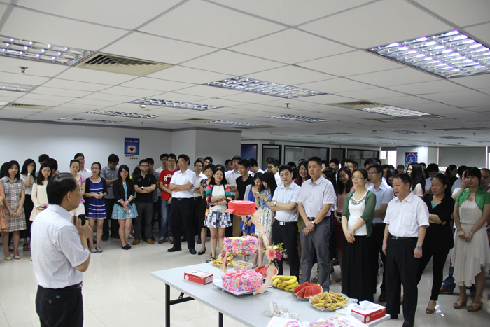 2014年6月6日,中盈盛达迎来成立11周年的大喜日子。今天上午,公司在佛山总部举办了简朴热烈的庆祝会。会上,公司董事长吴列进与全体员工回顾了公司11年来的发展历程,分享了新十年的成长计划。他强调,公司取得的成就归功于全体股东、客户和合作机构的信任,更离不开全体员工的长期共同努力。他勉励全体员工在新起点上再接再厉,争创佳绩。董事总裁谢勇东也代表经营管理团队发表了司庆感言。他表示,将带领全体员工一如既往、专注认真的把中盈盛达事业做大做强。随后,吴列进董事长和梁达明副董事长共同主持了寓意“一切顺利”的切蛋糕仪式,把庆祝活动推向高潮,庆祝会在一片热闹和欢快的气氛圆满结束。