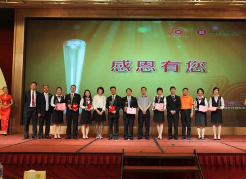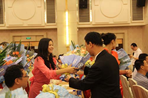 在感恩环节,中盈盛达首先对十年来给予大力支持的各级政府部门、行业组织、高等院校等相关单位进行了感恩鸣谢。接下来,中盈盛达员工献唱歌曲《感恩的心》,带领30名儿童“小天使”向银行、证券、信托、担保同行、信用评估机构等合作伙伴代表鲜花答谢;对佛山市浪鲸洁具有限公司等10家诚信客户代表和数十名忠诚员工代表进行表彰;最后,中盈盛达高管向全体股东鲜花,并隆重邀请6名创始股东上台答谢。