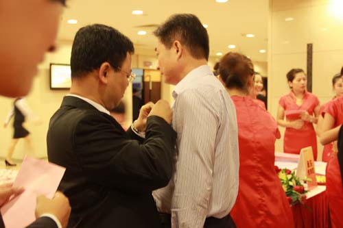 中盈盛达谢勇东董事总裁亲自为嘉宾佩戴活动胸徽