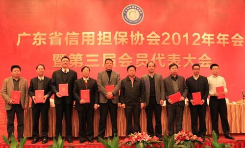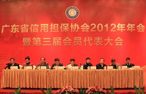 1月7日下午,广东省信用担保协会2012年年会暨第三届会员代表大会在顺德金茂华美达广场酒店隆重举行,来自全省112家会员担保机构130多名代表参加了会议。广东省中小企业局、广东省社会组织管理局、顺德区政府、全省21个地市经信委、中小企业局领导共50多人列席会议。