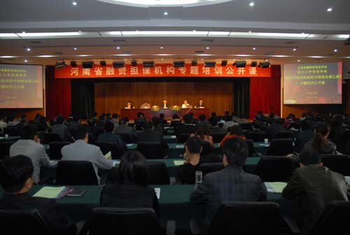 2012年10月27日和28日,河南省融资担保业协会联合浙江大学在郑州举办了全省融资性担保公司高级管理公开课,来自河南省的300多家融资性担保机构和60多家小额贷款公司的高管参加了课程。河南省中小企业局沈超局长等领导出席了开班仪式并致辞。我司吴列进董事长应邀授课。