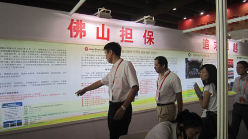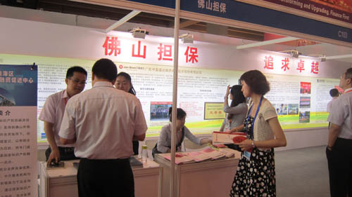 以“转型升级,金融先行——国际金融、产业金融、民生金融全面发展”为主题的首届国际金融交易博览会6月26日在广州开幕,本届金交会为期3天,展馆划分为金融管理、区域金融、金融合作与交流、金融企业、金融后台服务、民间金融、金融设备、金融文化等展区。中盈盛达作为佛山市信用担保行业协会会长单位,联合稳当、展鸿和助民三家同行共同组成“佛山担保”团集体亮相金交会,展示佛山担保整体形象。