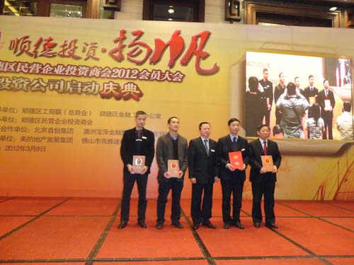 2012年3月8日,顺德区民营企业投资商会会员大会在喜来登酒店进行,中盈盛达吴列进董事总裁以该商会副会长身份应邀出席大会并担任大会抽奖嘉宾。会上,吴总荣获商会授予的首批专业委员会“金融与证劵委员会副主任”证书,中盈盛达荣获“2011年度贡献大奖”的牌匾。
