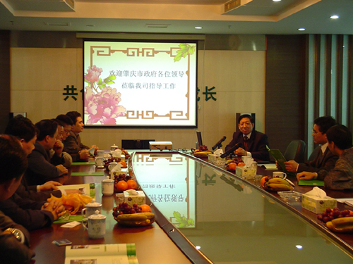 3月27日,肇庆市工商联(总商会)会长黄子显和周文秘书长带领全体副会长一 行十三人光临我司考察交流。佛山市工商联谢君昉会长与我司吴列进董事总经理一起热情接待了客人。听完我司的情况介绍后,客人对我司的经营模式和管理水平作了高度的评价,并就如何加强合作、邀请我司在肇庆设立分支机构、共同解决肇庆中小企业融资难等问题进行了深入地探讨。