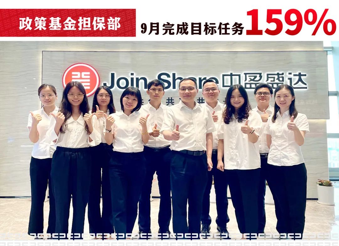 政策基金担保部9月完成目标任务159%。政策基金担保部积极响应“争先创优”活动,认真落实公司“三抓”工作要求,加强与各部门协同配合,优化基金业务流程并对重点合作的银行渠道实施地毯式营销,取得明显效果。在全员的共同努力下,9月份业绩成效显著,部门将继续努力,实现本年度目标任务。