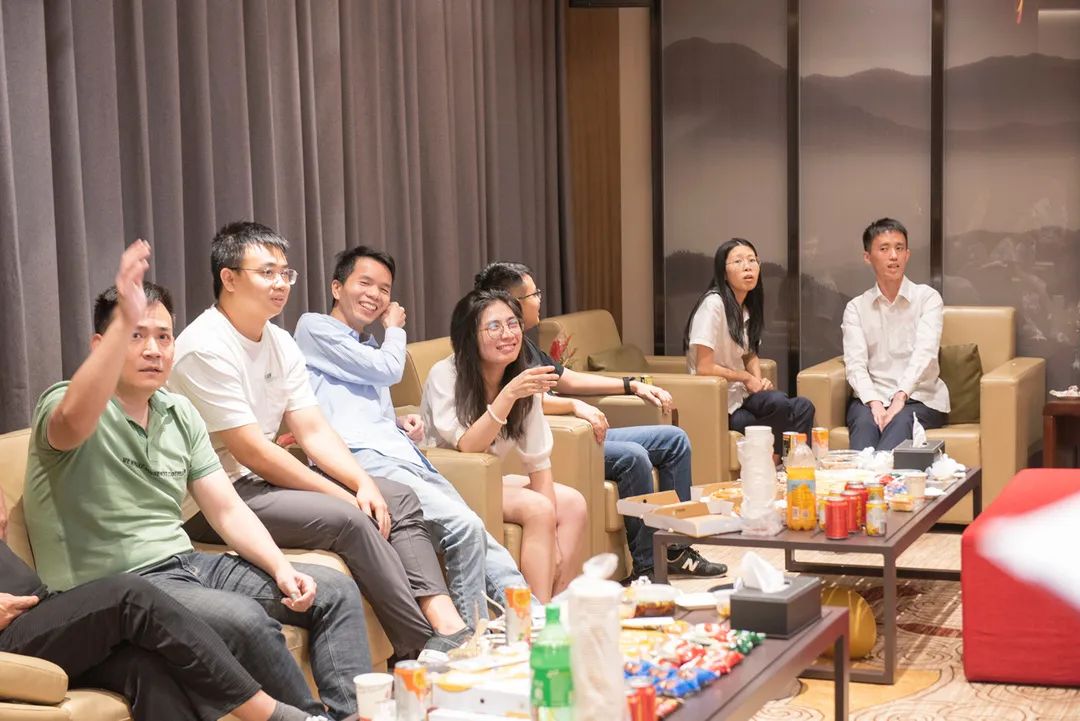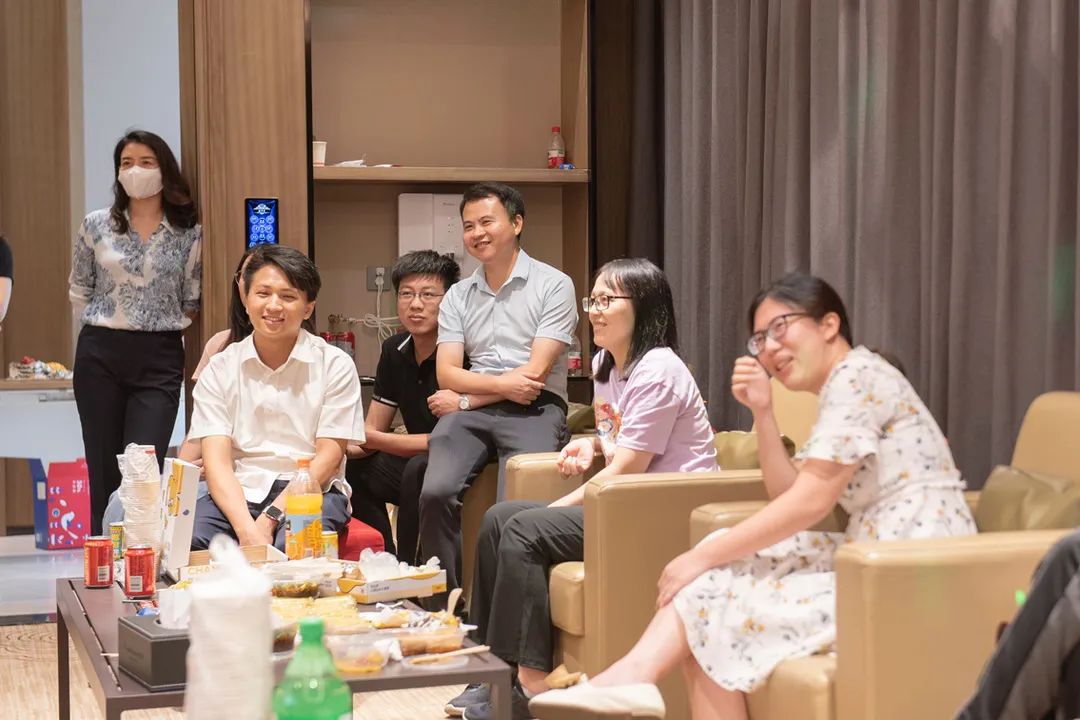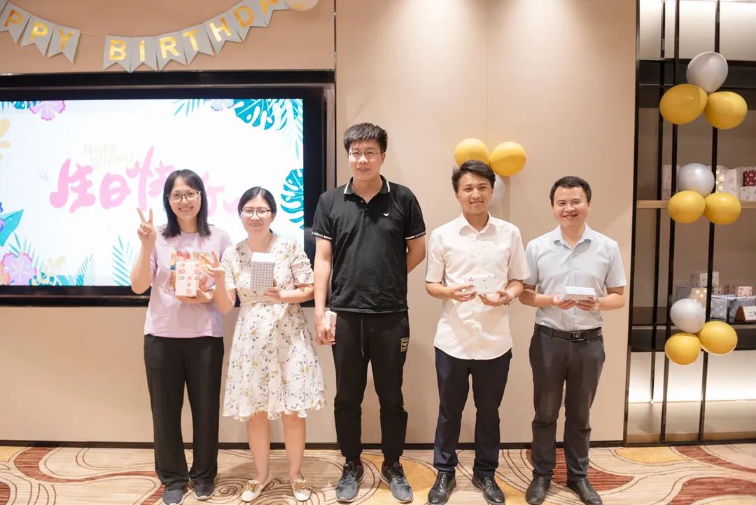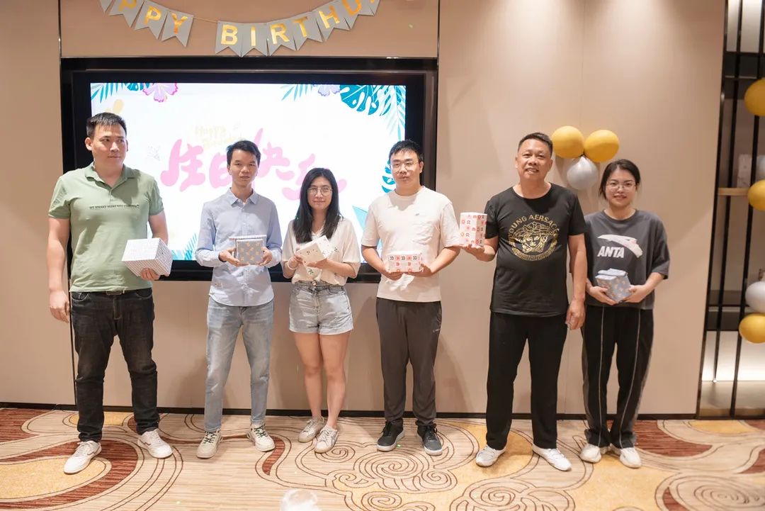 生日会上,寿星们在舒适轻松的氛围中,一起切蛋糕、许愿、品尝美食,还积极参与到歌曲竞猜竞答的游戏。活动不仅为寿星们精心准备了全民猜歌、全能接唱、疯狂猜歌和接唱擂台四个紧张又好玩的游戏环节,还为寿星们准备了包装精美的丰厚奖品:游戏中获奖的寿星可按照一、二、三等奖的获奖名次用盲盒的方式随机抽取一份奖品,给寿星带来别具一格的惊喜。大家在游戏中分享快乐,感受到公司这个大家庭的关怀和温暖。每个人的脸上都洋溢着幸福的笑容。