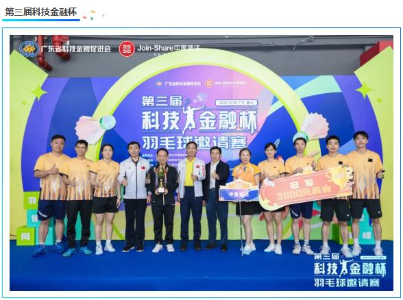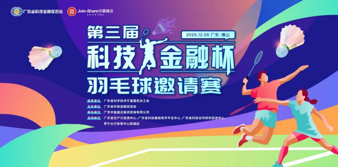 12 月 6 日,由广东省科学技术厅直属机关工会指导、广东省科技金融促进会主办、中盈盛达承办的第三届广东省科技金融杯羽毛球邀请赛在佛山新城中盈盛达国际金融中心裙楼 5 楼李宁众行体育中心(新城店)举行,自全省科技界、金融界及产业界的约百名羽毛球爱好者齐聚一堂,以球会友、共展风采。其中,中盈盛达代表队作为凭借强劲实力成功卫冕,以总分第一名的优异成绩斩获本届邀请赛冠军。